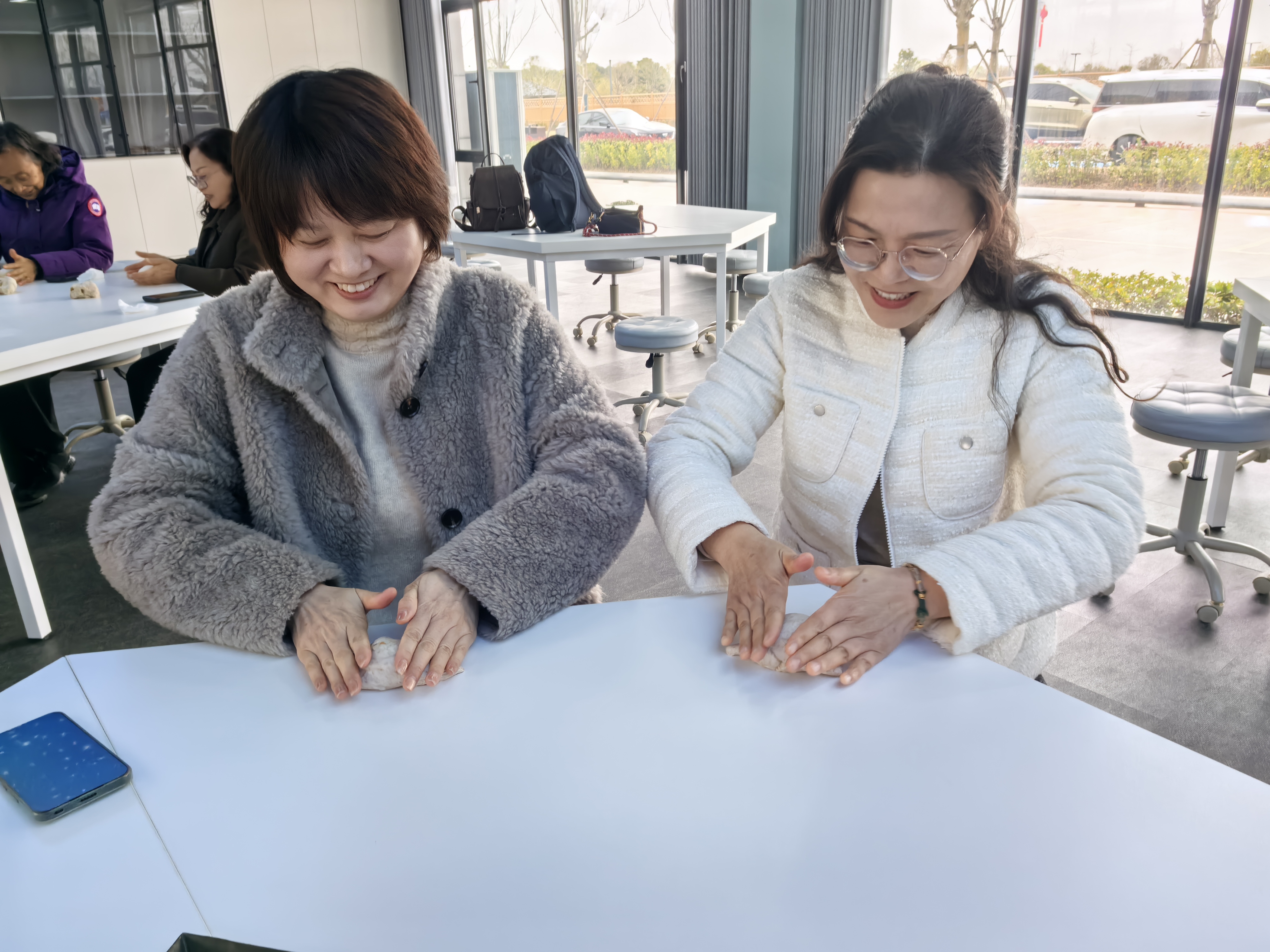 春光明媚,微风和煦。女职工们首先体验了手工制作窑烤面包。在专业人员的指导下,大家亲手揉制面团、塑形装饰,并送入传统的窑炉中进行烤制。