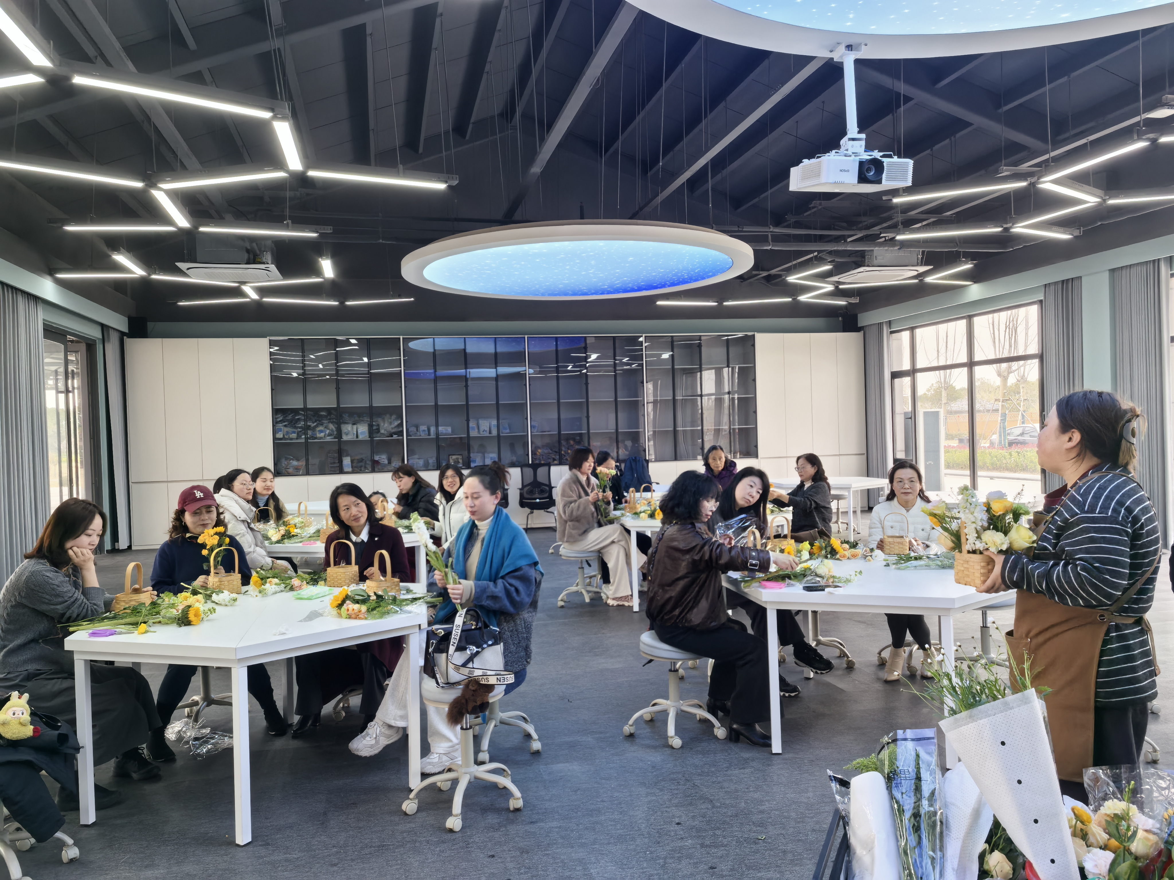 随后进行的是一场别开生面的花艺沙龙。花艺老师从花卉选择、色彩搭配、造型设计等方面进行了详细讲解。在芬芳四溢的氛围中,女职工们发挥创意,用心构思,将一朵朵鲜花错落有致地组合在一起,创作出一盆盆赏心悦目、独具匠心的插花作品。
